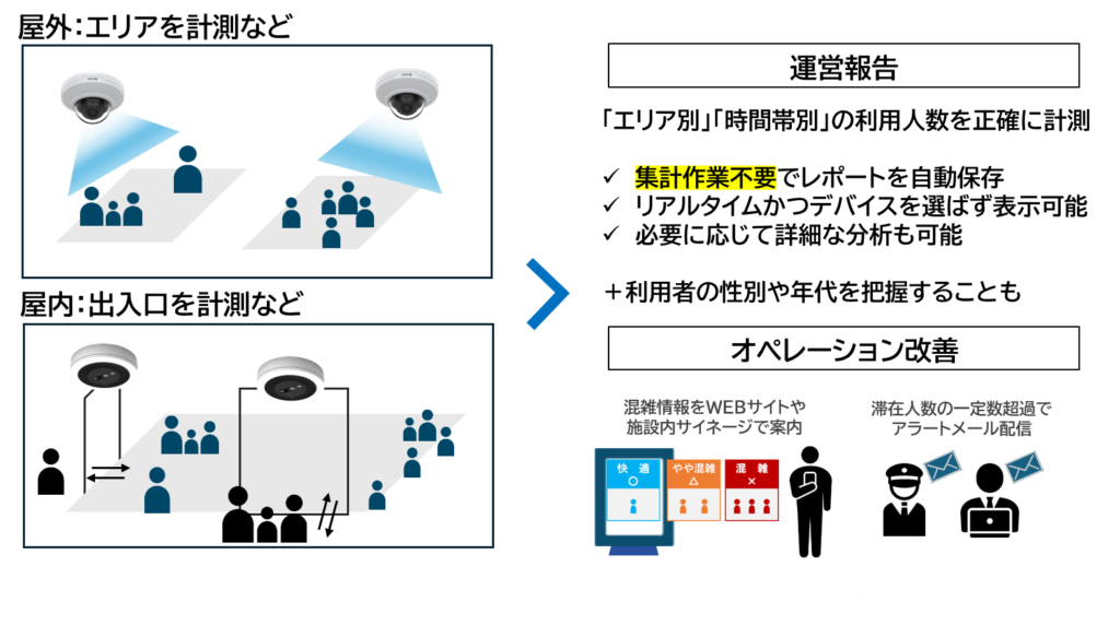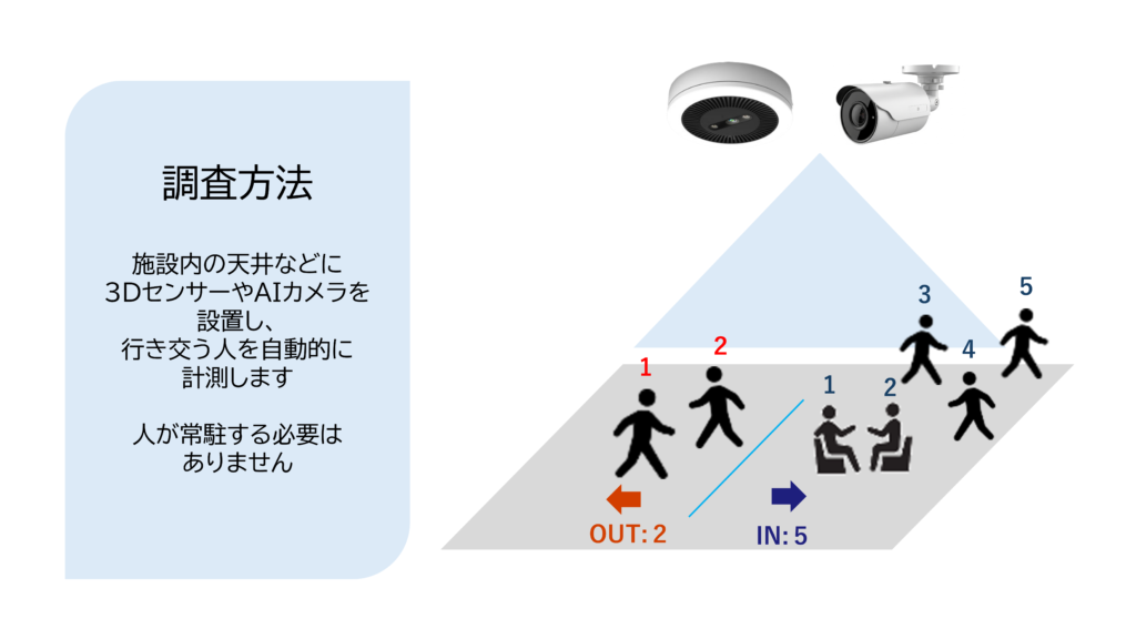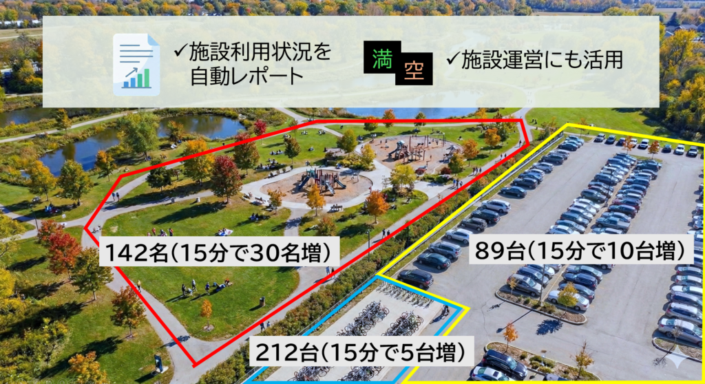 公園やスタジアム、ホールといった公共施設を、どれくらいの人数が利用したのか。従来、それを調べるには、現地に人員を長時間配置するなど、計測に人手と時間をかける必要がありました。