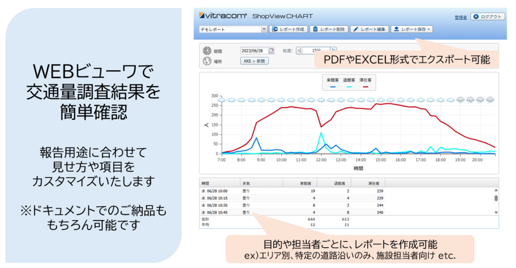 ⇒AIカメラが24時間365日、交通量の「波」をつぶさに把握し、効率的な工事をサポートします。 - プロポーザルに勝つために、提案の根拠となる交通量情報がすぐに欲しい。