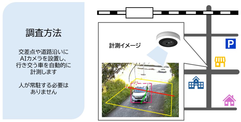 弊社は交通流・人流計測のリーディングカンパニーとして、AIカメラを活用した次世代の交通量調査をご提案いたします。